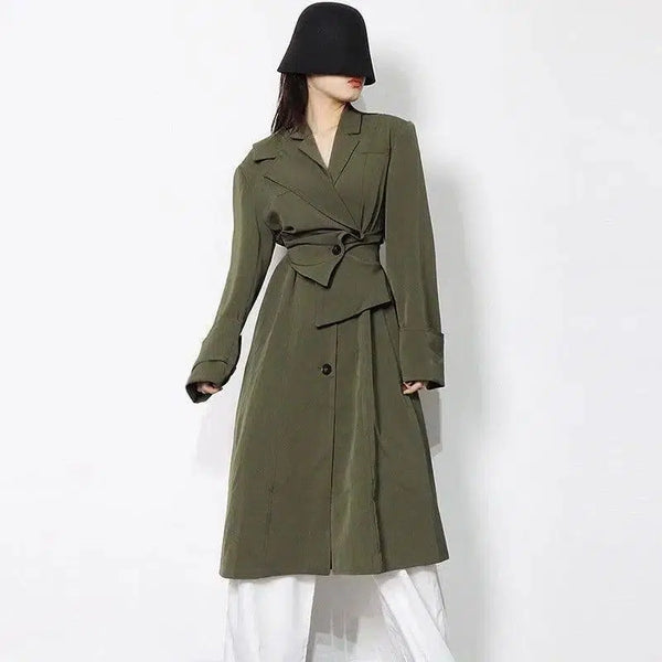 不规则拼接单排扣翻领长款大衣