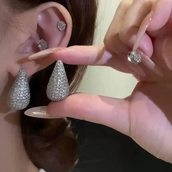 时尚饰品 复古厚重圆顶垂坠耳环 女士光泽不锈钢厚锆石镶嵌水滴耳环 耳环 女士