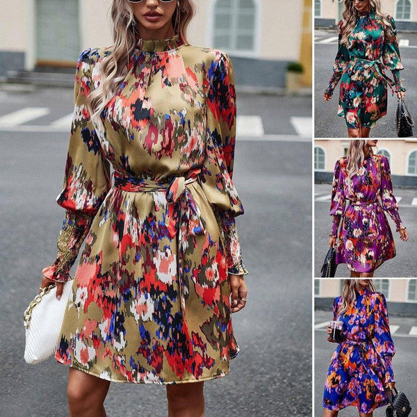 印花连衣裙 秋季优雅长袖连衣裙