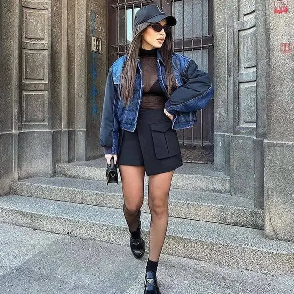 - 服装类型:飞行员夹克外套 材质:拼接牛仔布风格:休闲 版型: 宽松舒适宽松版型,穿着舒适