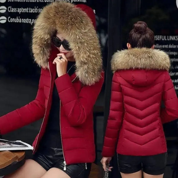 - 领口/肩部款式:高领,毛边风帽