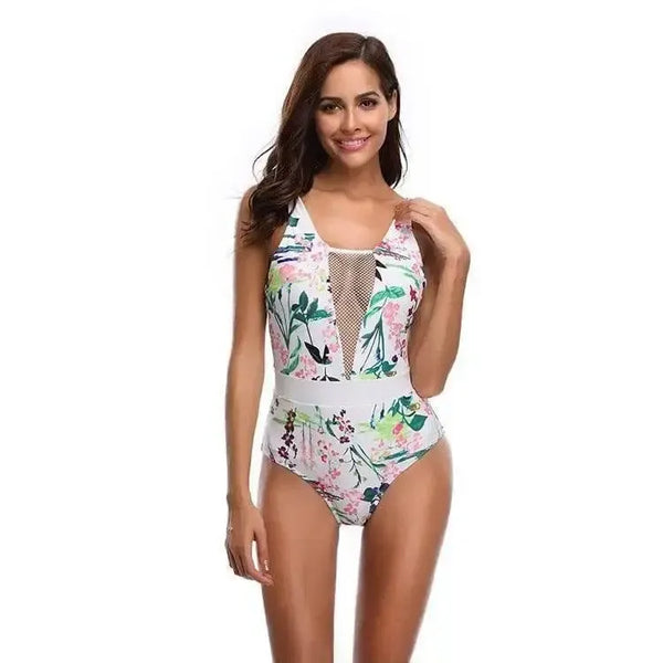 丝网印花女式连体泳装