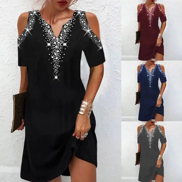 - 风格:采用时尚露肩设计的女式连衣裙领口:优雅的 V 领,带来妩媚的美感