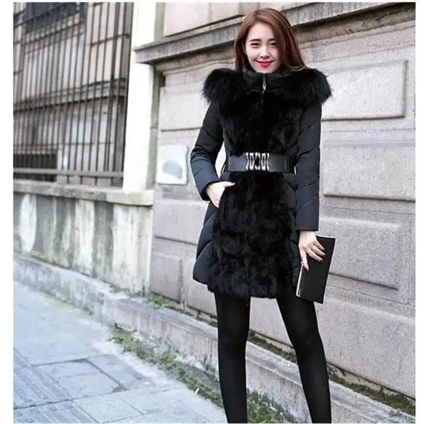 - 风格:时尚奢华女装季节: 适合冬季穿着专为冬季保暖设计特性:优雅的皮质衣领,尽显精致触感