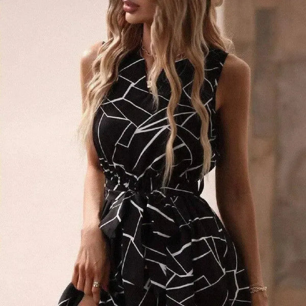 时尚无袖印花女式连衣裙