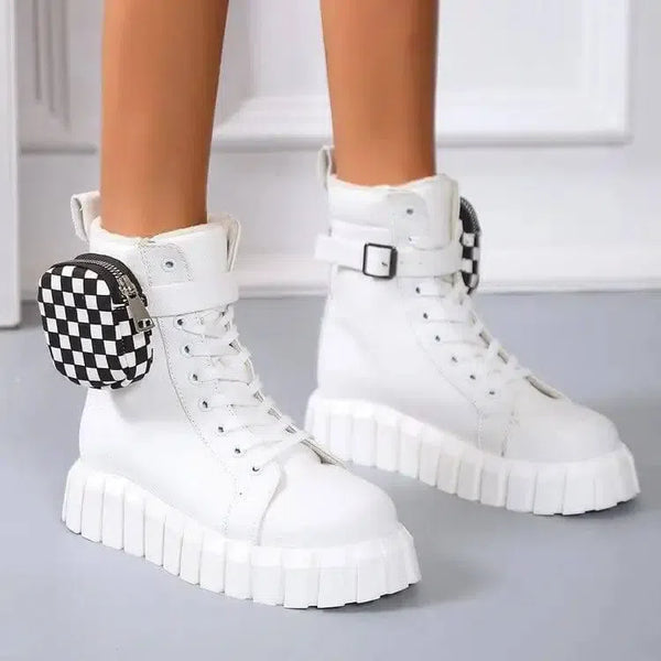 带皮带扣口袋的朋克踝靴 设计师靴子