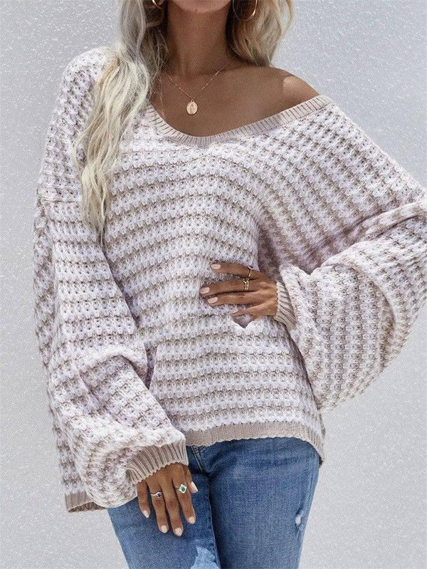 条纹毛衣 V 领毛衣