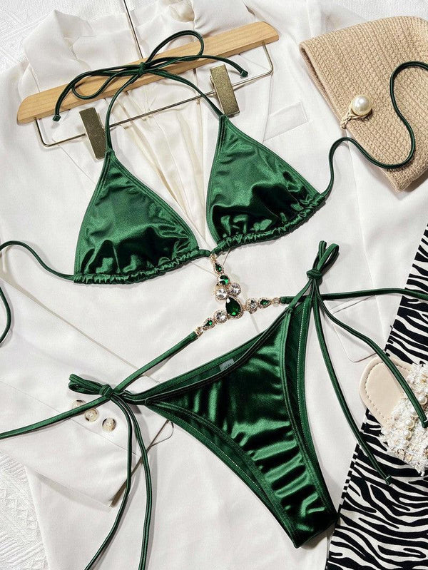 水钻 装饰 绑带 颈部 比基尼 套装 lovemi