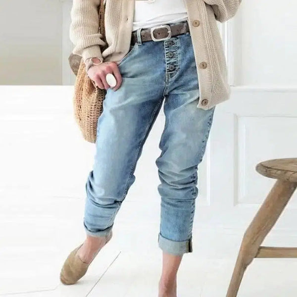 牛仔裤 女式钉珠时尚直筒牛仔裤