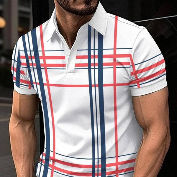 男式印花翻领纽扣运动短袖衬衫海军蓝/3XL