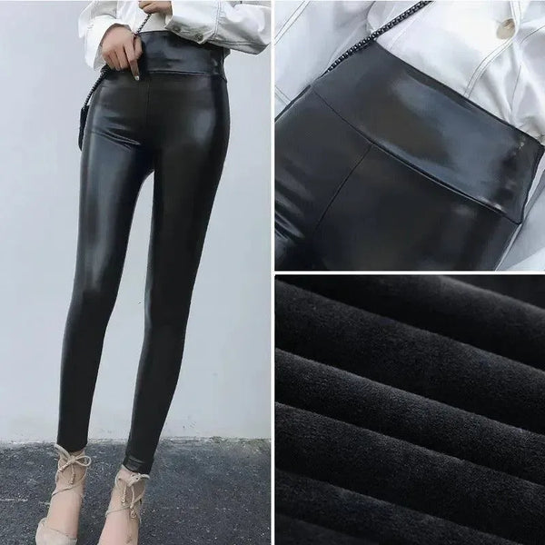 类型: 高腰皮裤 材质:PU 皮革尺寸:大号风格:非常适合休闲或时髦的服装