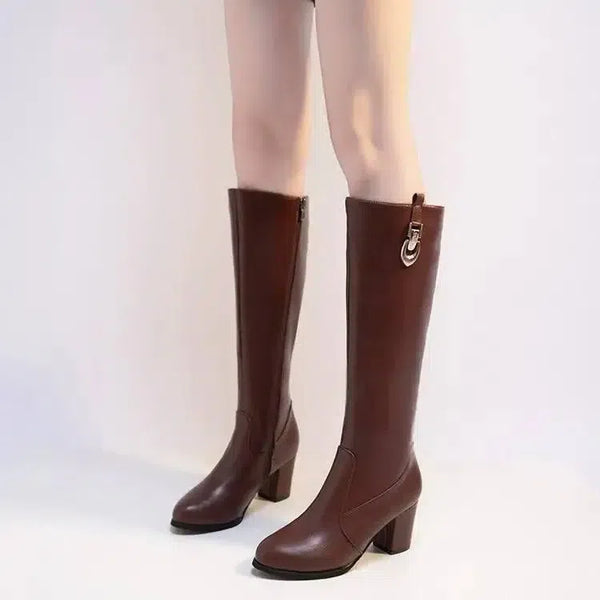 秋冬厚跟尖头高筒靴