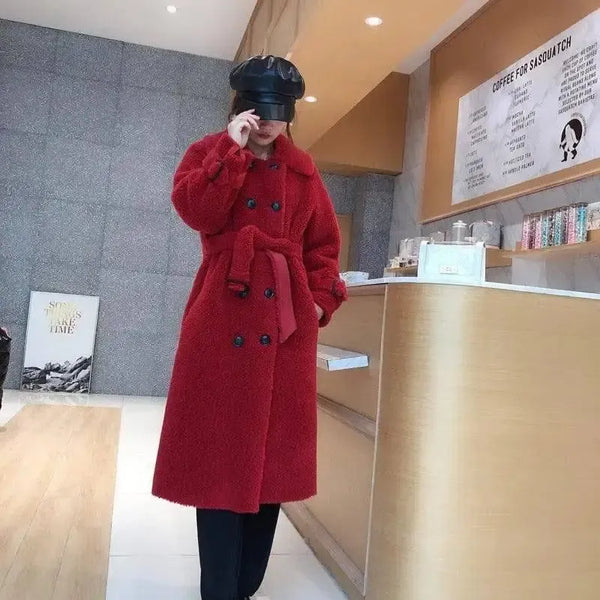 梦幻谷中长款羊剪绒女式皮草大衣