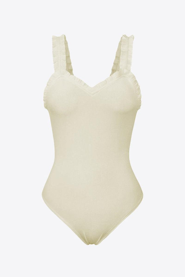 条纹-褶边-装饰-无袖-Bodysuit