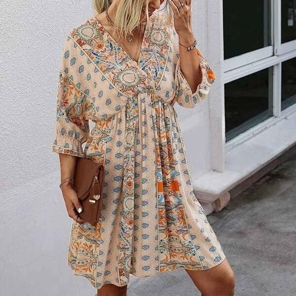 领口: V领 - 版型:女性化廓形,腰部饰边