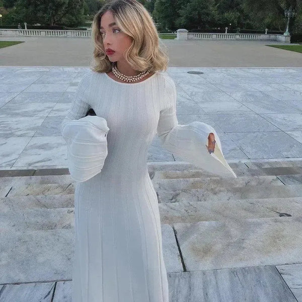大露背圆领连衣裙