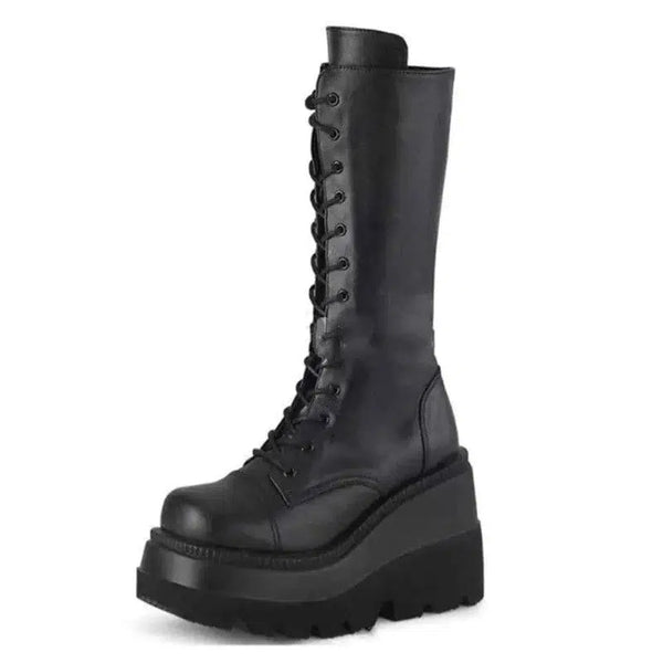 - 风格:平台楔跟靴 鞋跟类型:楔形设计:抬高平台,提高舒适度