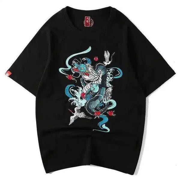 版型:常规版型 - 设计: 突出的龙形图案,正面有花朵元素