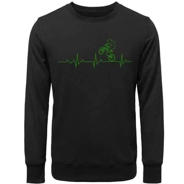 设计细节:采用独特的绿色图案,骑车人的心跳线