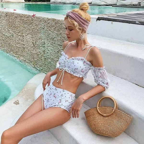 设计:迷人的圆点印花搭配俏皮的荷叶边装饰闭合:可调节的抽绳,可根据个人喜好调节合身度保养:可机洗,易于保养