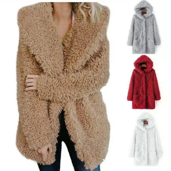 毛绒连帽女式冬季外套