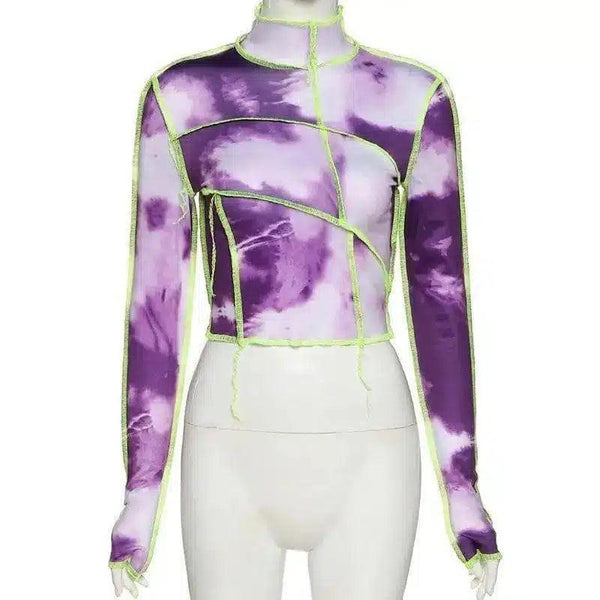 设计:醒目的紫色扎染图案,搭配对比色饰边