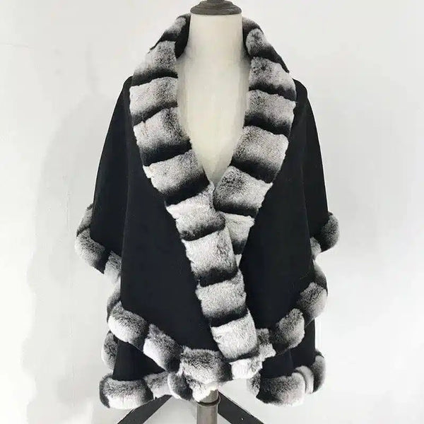 狐狸毛拼接羊绒披肩大衣