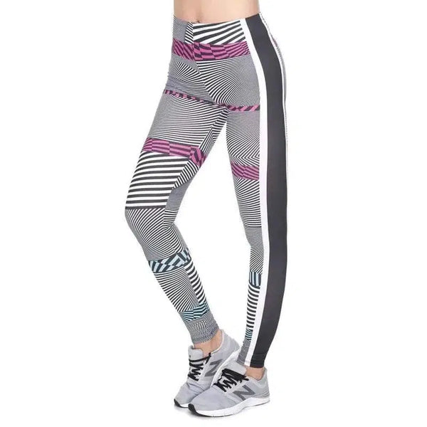 - 版型:贴身,具有弹力,便于活动 设计:大胆的多图案印花,搭配对比鲜明的侧板