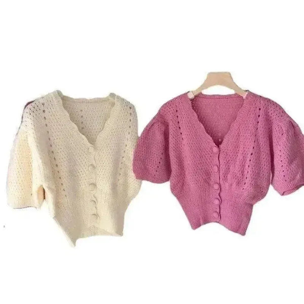 针织短袖纽扣开襟衫