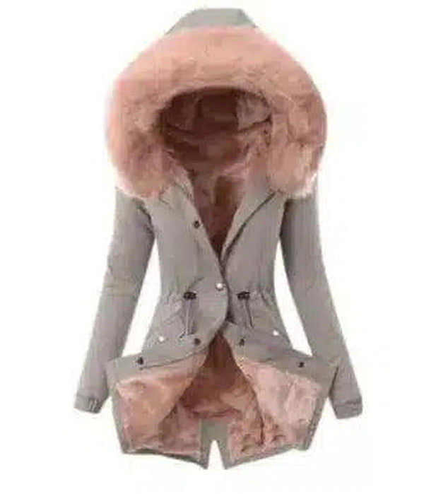 领口/肩部款式:连帽设计,带人造皮草饰边 - 袖子长度:长袖