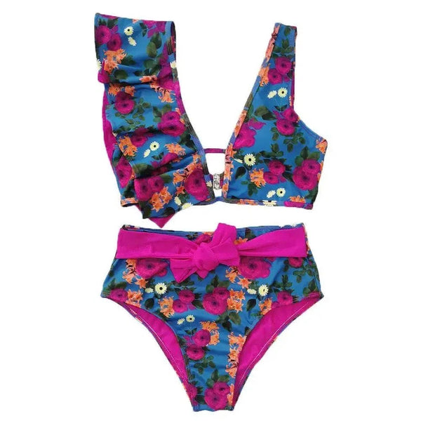 - 产品类型: 不对称荷叶边高腰比基尼泳衣
