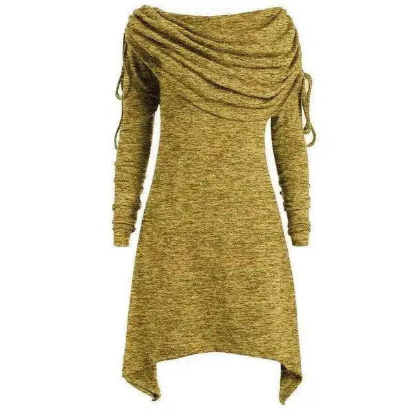 - 垂坠领口:优雅的垂坠领口为这款连衣裙增添了柔美的女性气息,为各种体型的女性提供了妩媚的外观。