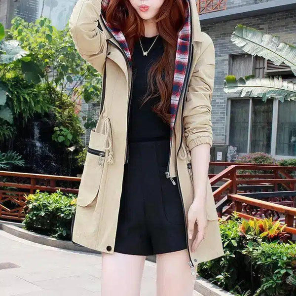 领口/肩部款式:全拉链开合,带格子衬里连帽 -
