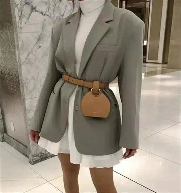 - 款式细节:腰带上附有时尚配饰包