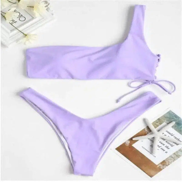单肩纯色开叉泳装比基尼