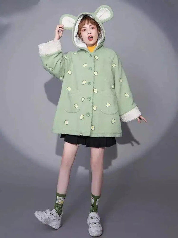 - 领口/肩部款式:连帽设计,带超大耳朵