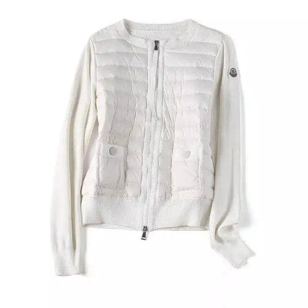 带口袋的绗缝拉链针织外套