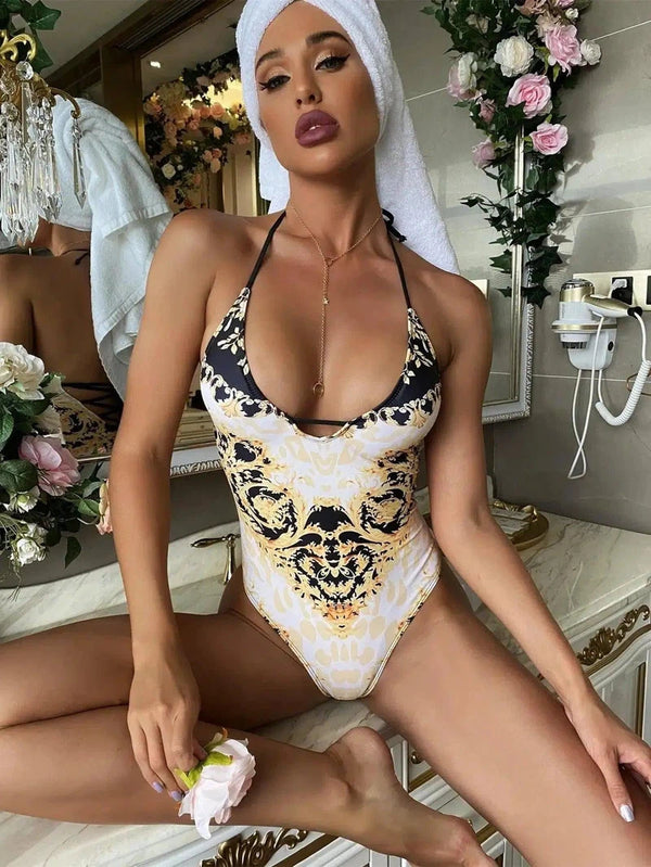 - 款式:复古印花连体泳衣,采用比基尼轮廓