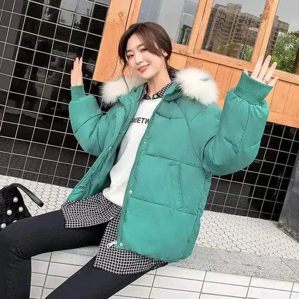 - 领口或肩部样式:连帽,带人造皮草装饰