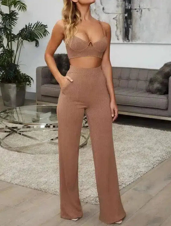 - 领口:V 领 版型:合身上衣搭配高腰喇叭裤弹力:看似有贴身的弹力