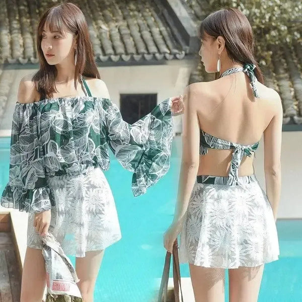 产品描述:女式三件套泳衣,聚拢遮盖腹部