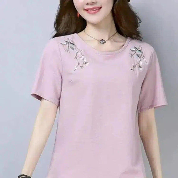 - 领口:圆领 版型: 宽松版型:宽松版型设计细节: 肩部绣花装饰