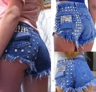 女式破洞牛仔裤宽松短裤铆钉热裤