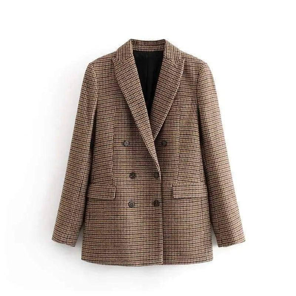 秋冬休闲双排扣格子女装