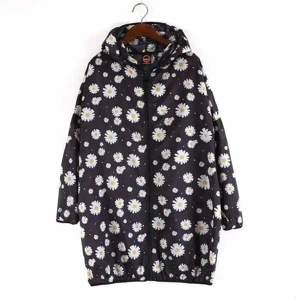 - 迷人的雏菊图案:夹克上的雏菊印花在深色背景的衬托下显得格外醒目,在大胆和女性化风格之间取得了完美的平衡。