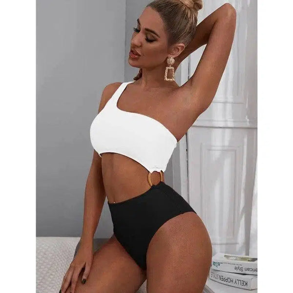 系带比基尼连体中空泳衣
