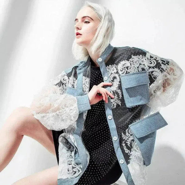 - 服装类型:女式纽扣衬衫袖长:全长袖,蕾丝细节领口或肩部款式:经典领口,蕾丝肩部镶边版型或弹性:宽松版型,带结构性袖口