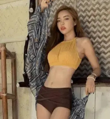 套装包括:比基尼上衣、下装和配套罩衫款式: 时尚三件套,海滩或泳池边的完美选择