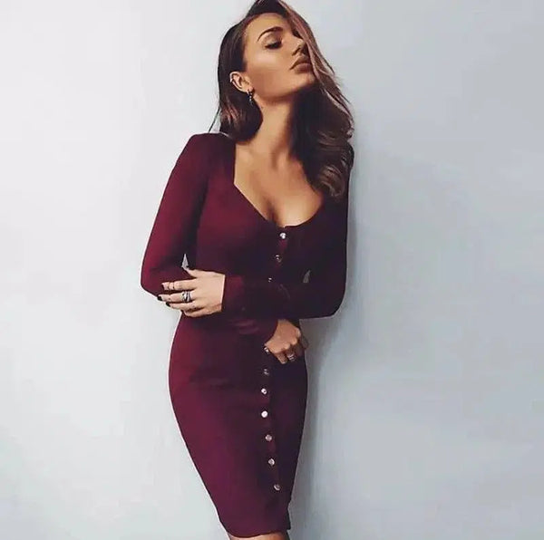 春季女装连身修身长袖派对鸡尾酒铅笔裤