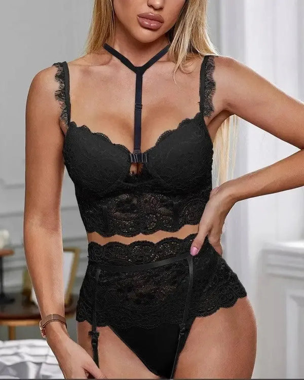 - 文胸特点:上推支撑,优雅蕾丝细节 套装包括:配套文胸和内裤适用于:日常穿着或特殊场合